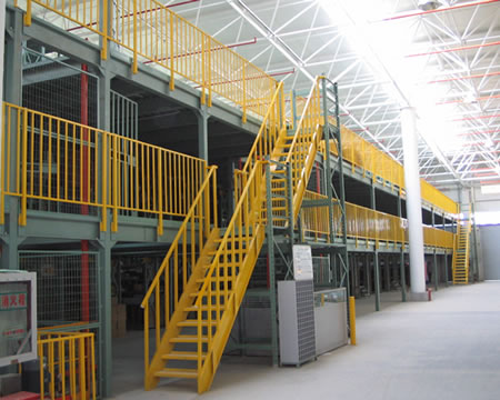 阁楼货架是一种充分利用仓库上层空间的简易货架。在已有的货架或工作场地上建造一个中间阁楼以增加储存的面积。阁楼楼板上一般可放轻泡及中小件货物或储存期长的货物,可用叉车、输送带、提升机、电动葫芦或升降平台提升货物。阁楼上一般采用轻型小车或托盘牵引小车作业。