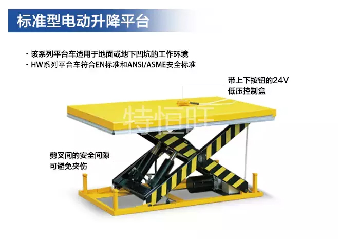 2. 安全可靠:升降平台采用稳固的结构设计和高强度材料,可以确保使用时的安全性和可靠性。